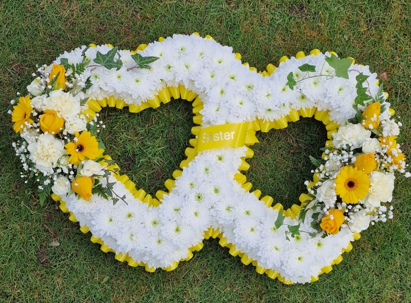 Open double heart Based in Double White Spray in colours you would like.